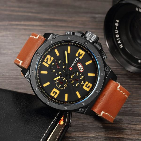 CURREN 8230 De Moda De Gran Número De Display Hombres Reloj De Cuarzo De Cuero De Cuero Reloj Deportivo
