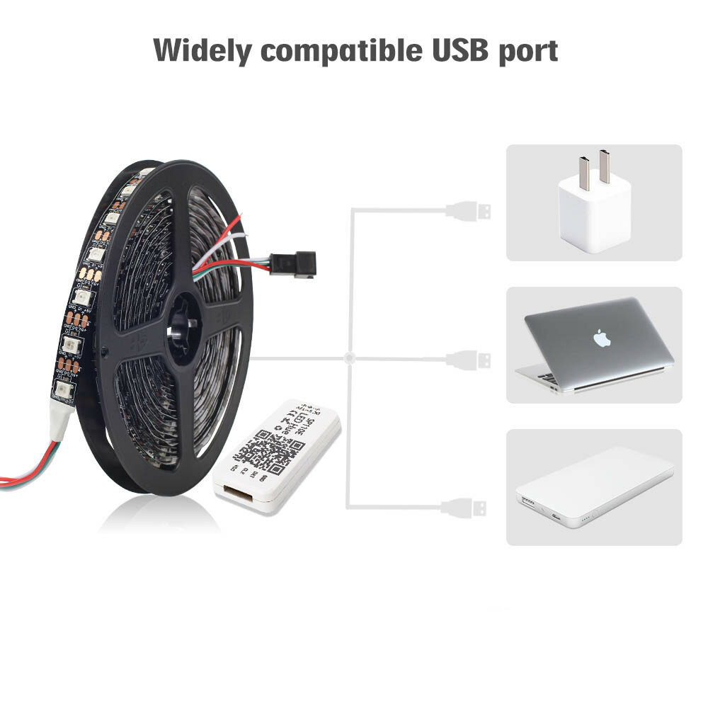 DC5V 1M 2M WS2812B 5050 Bluetooth APLICACIÓN USB Control RGB LED Kit de luz de tira direccionable individualmente