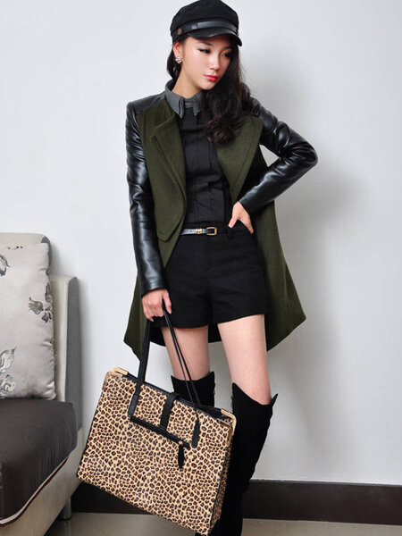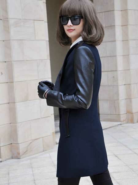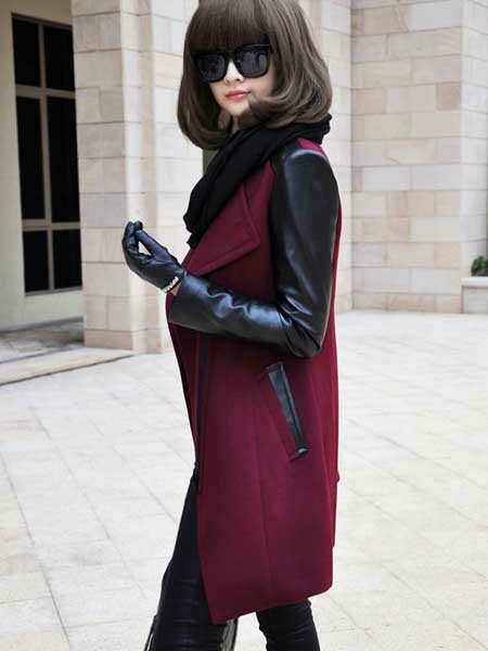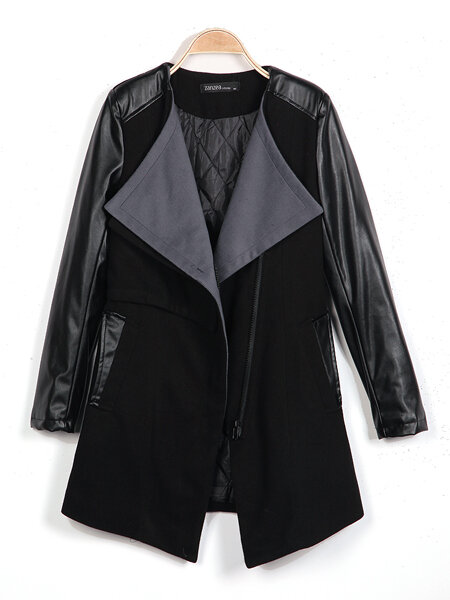 • Hechizo cremallera europeo Leatheroid gruesos abrigos de manga larga