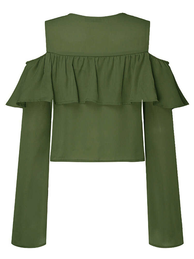 • Plus Tamaño Sexy Mujer Blusa con Botones sin Tirantes de la Manga de la Campana