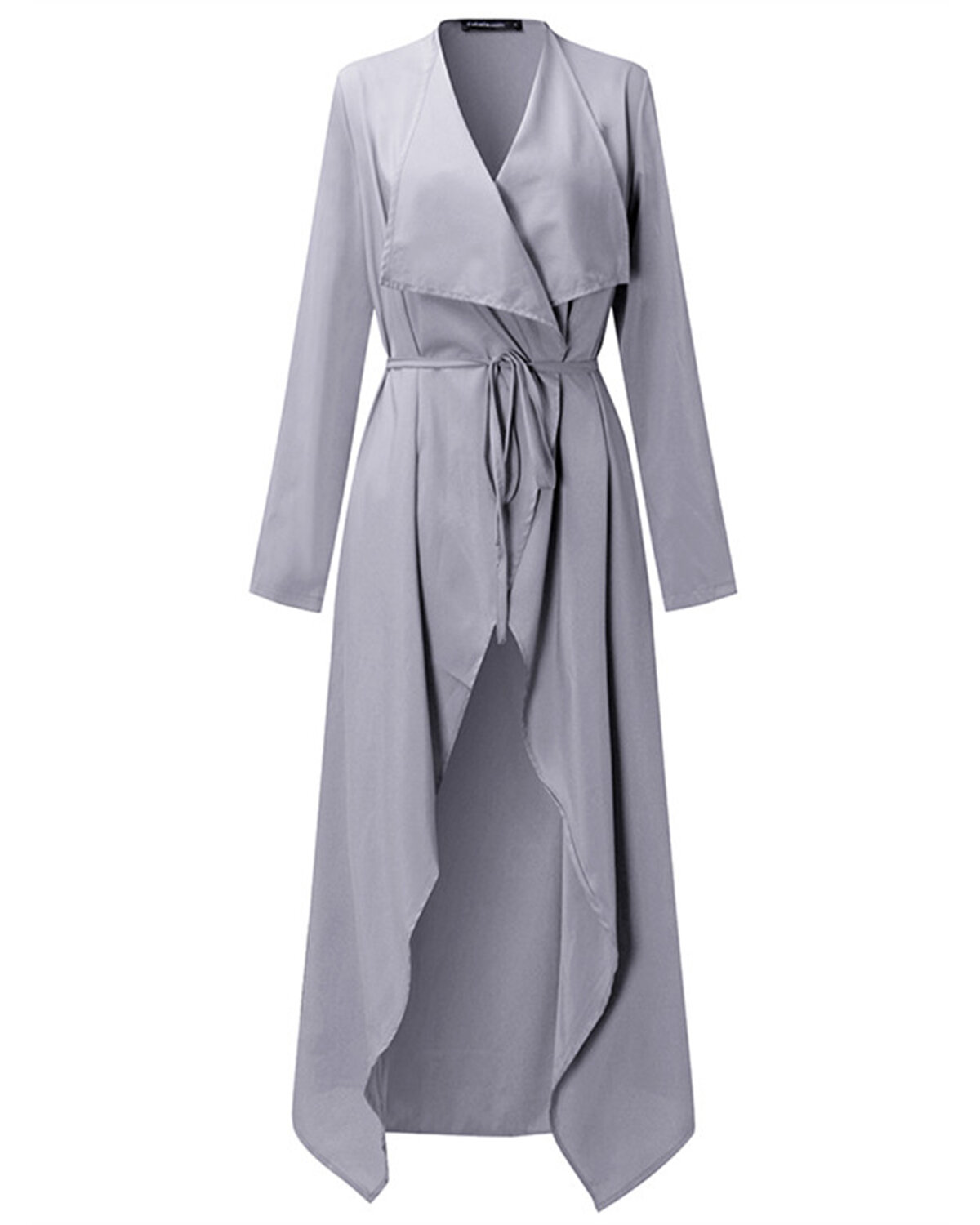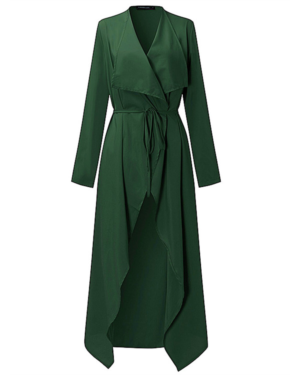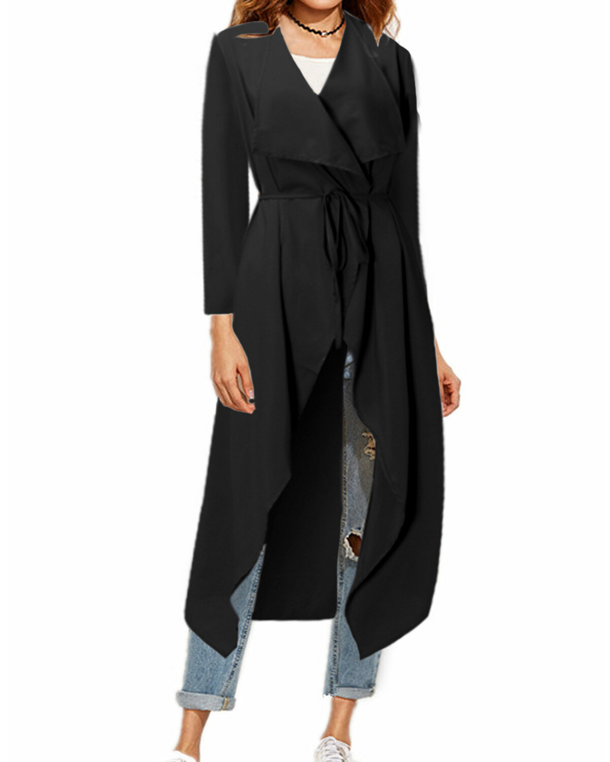 Mujeres de manga larga Waterfall Cardigan Abrigos largos con Cinturón COD