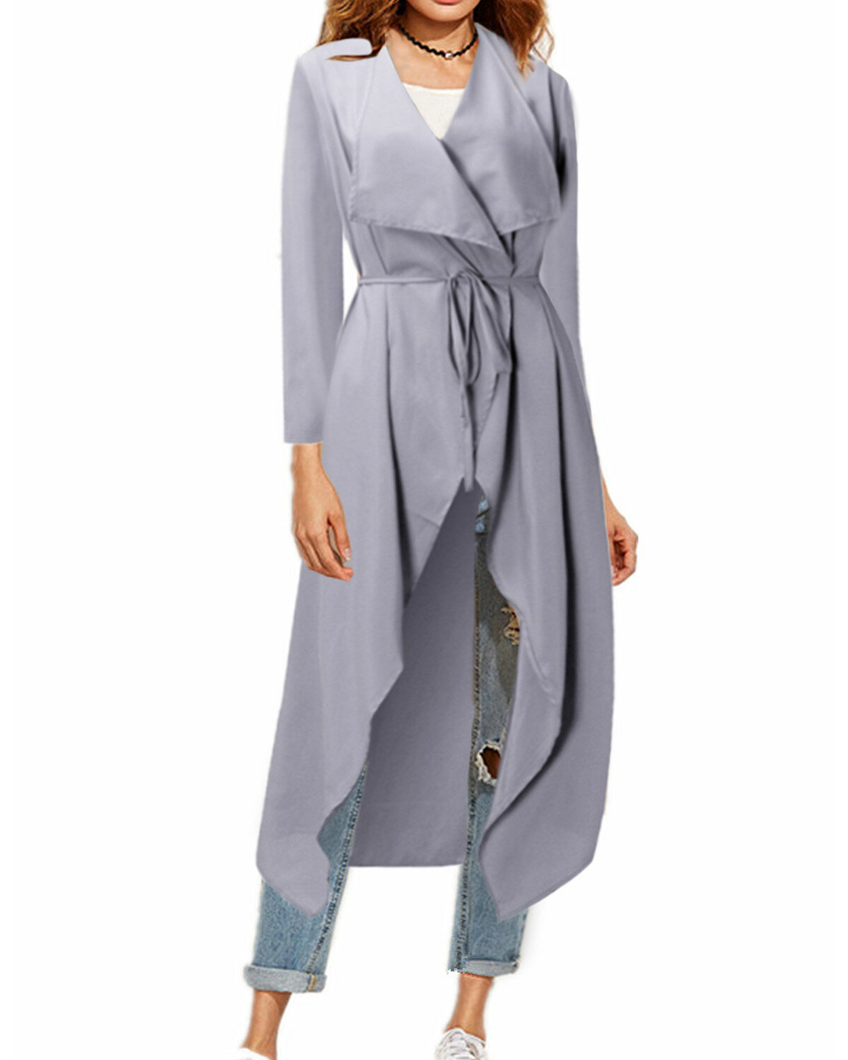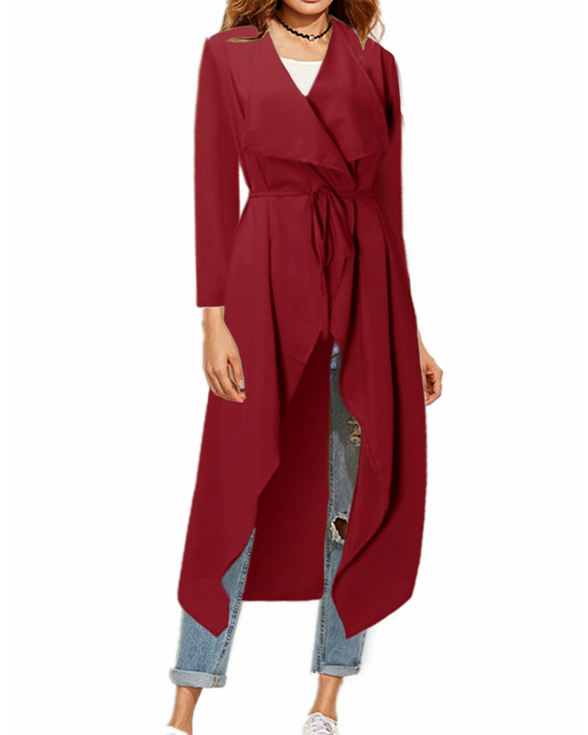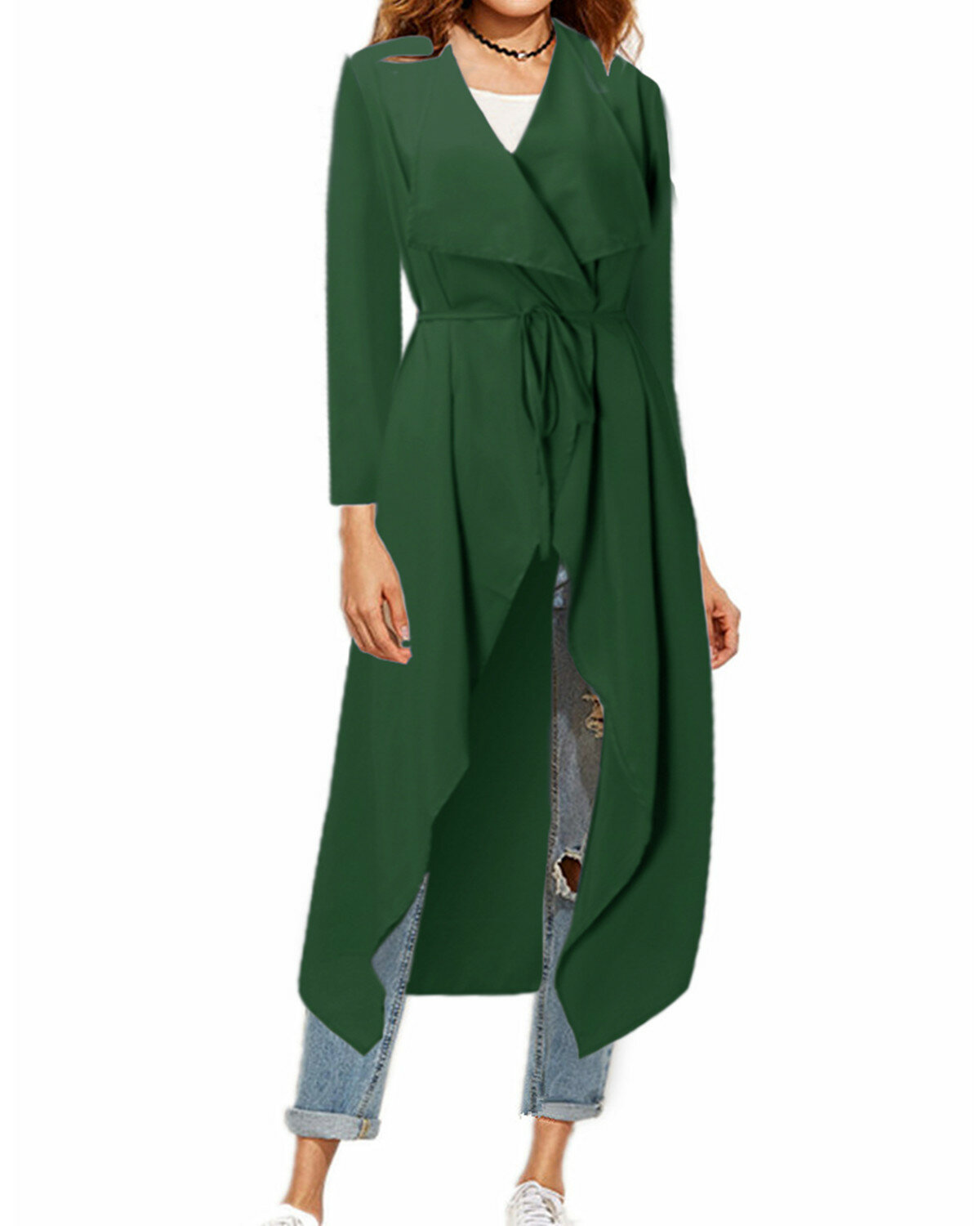 Mujeres de manga larga Waterfall Cardigan Abrigos largos con Cinturón COD