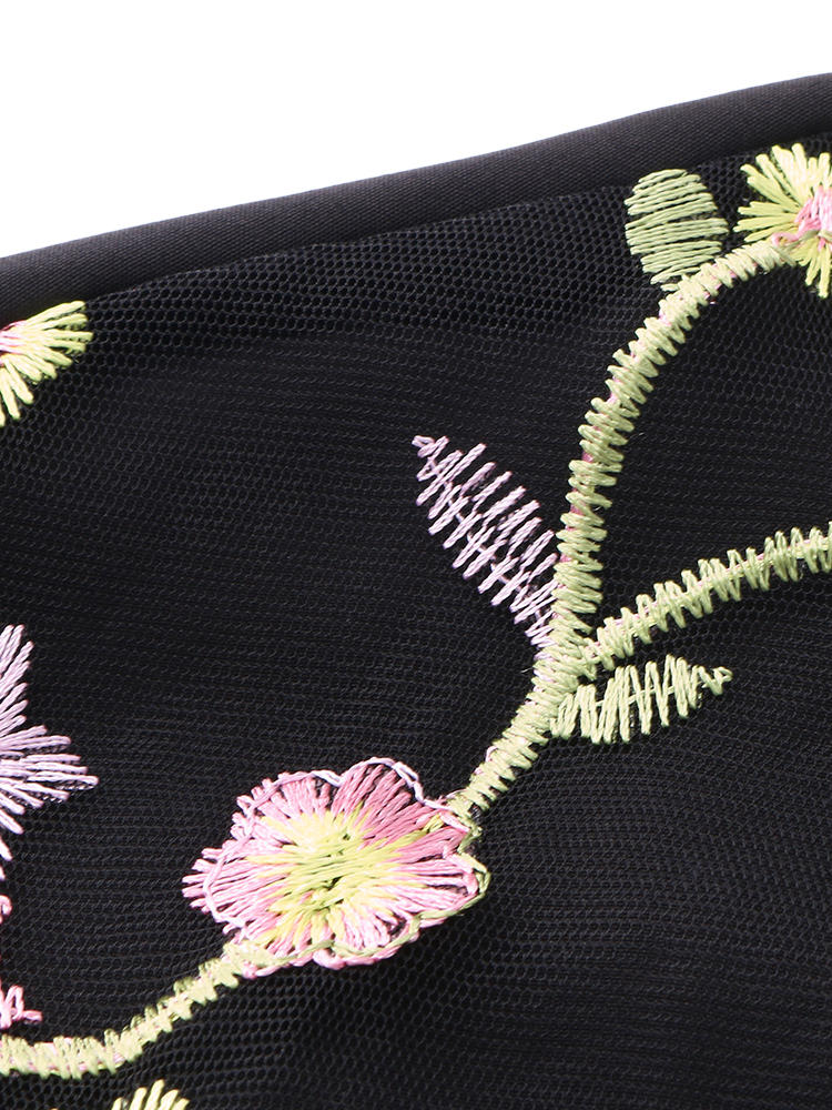 • Blusa de empalme de malla de bordado floral de manga corta Sexy Mujer