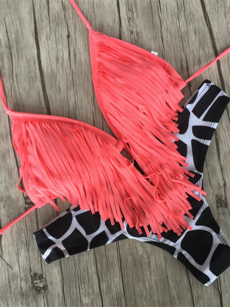 Mujer Sexy Tassel Bra Bikini Sets Push Up Bikini Floral Trajes de baño