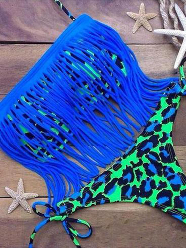 • Mujer Sexy Tassel Bra Bikini Sets Push Up Bikini Floral Trajes de baño
