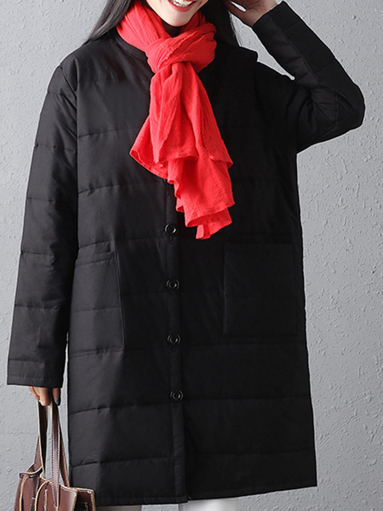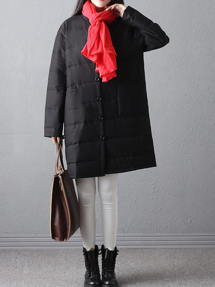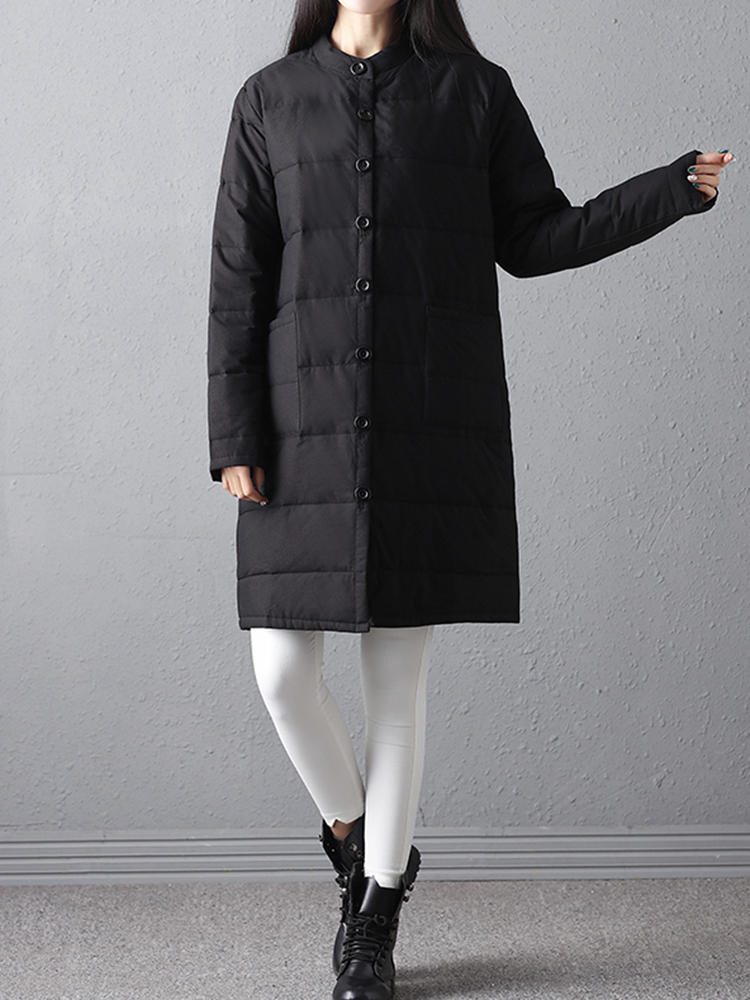 • Mujer Winter Warm Black Botón de manga larga Abrigos largos