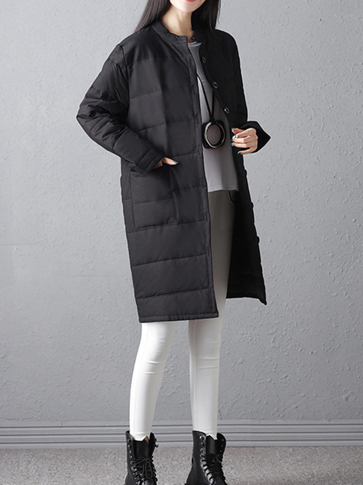 Mujer Winter Warm Black Botón de manga larga Abrigos largos COD