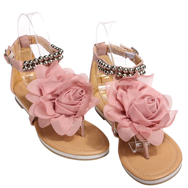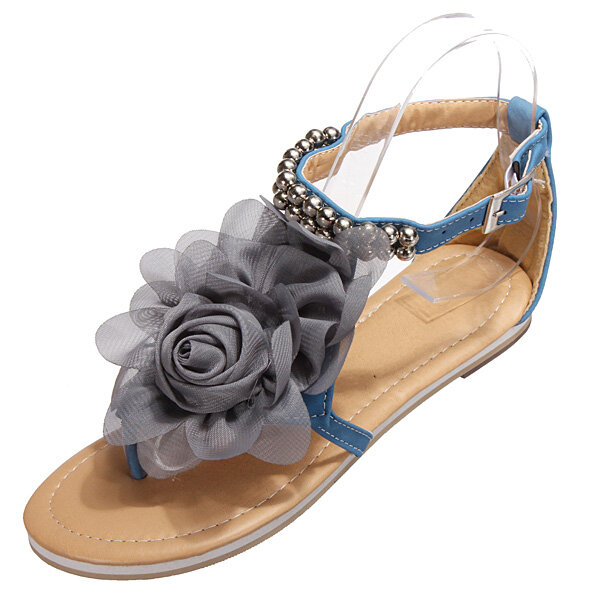 Tela de gasa Pisos de flores Correas T Sandalias Playa Zapatos