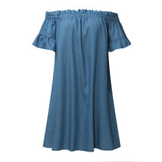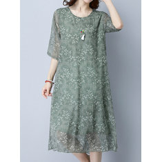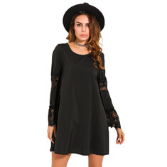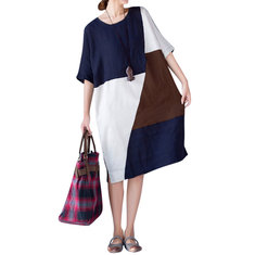 Mujer vestidos de media manga con cuello vuelto sueltos