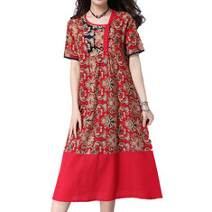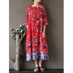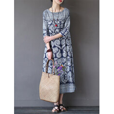 Vestido Maxi de Tres Cuarta de Manga de impreso Retro Suelto para Mujer