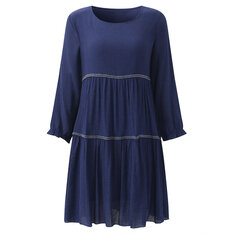 Casual Mujer Linterna manga O-cuello puro color plisado Vestido